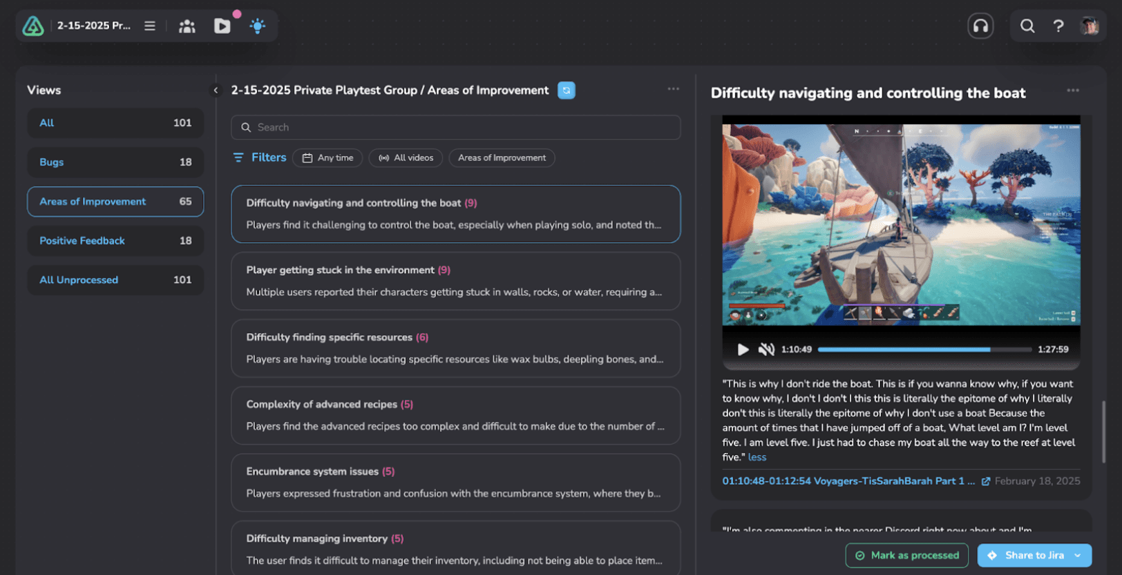 Democratized insights: Team members across all disciplines can now directly access relevant player feedback without watching hours of footage